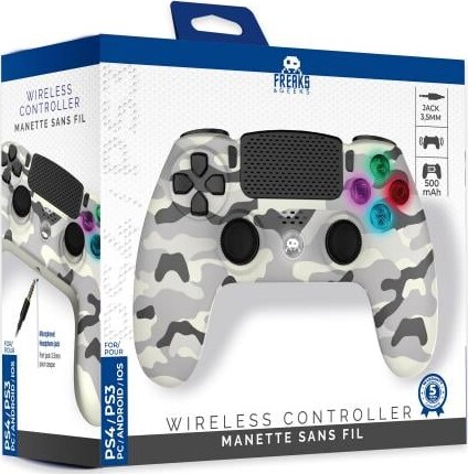Den trådløse controller til PS4 med 3,5 mm jackstik i "LED-White Camo" design fra Freaks...
