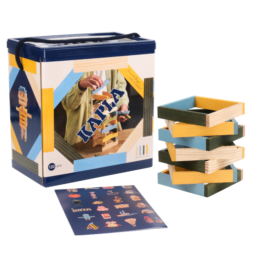 Med Kaplas byggeklodser møder dit barn en verden af muligheder for at bygge og danne mønstre - i både 2D og 3D.Uden hverken lim eller clips kan dit barn skabe utrolige værker - og imens udvikle sin fantasi og motorik. Legen fremmer logik og fantasi, og dit barn lærer helt umærkeligt om geometri, matematik, rumlighed og balance.Gennem barndommen gennemgår dit barn forskellige trin af kognitiv udvikling. I hvert trin leger dit barn på forskellige måder og udvikler forskellige færdigheder. Kapla udvikler sig med dit barn, der gradvist kan skabe mere og mere komplicerede konstruktioner.Koncentration, vedholdenhed og tålmodighed styrkes under legen.Sættet indeholder:120 stk i blå, gul og grøn.Vælg gerne flere farver eller brug en farvet klods som supplement til andre Kapla brikker for at skabe dybde i byggeriet og mulighed for at lave mønstre i flere farver.Tip: Lav en sej dominobane med stavene - og se dem vælte på stribe!Find desuden inspiration til utrolige mønstre og bygningsværker i de flotte inspirationsbøger fra Kapla, som du finder lige her.