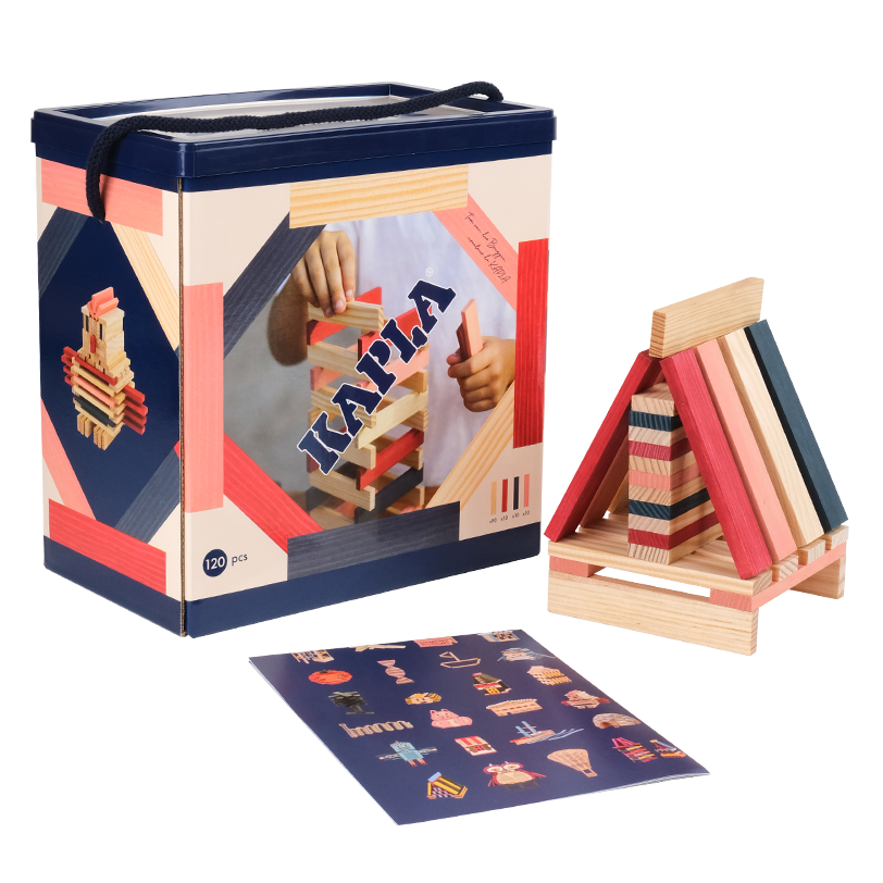 Kapla er byggeklodser af fyrretrÊ, der gÞr dem nemme at balancere og stable. Desuden er de meget solide og stabile. Brug dem til at bygge snoede trapper, hÞje tårne med mere efter fri fantasi. Eller sÊt dem op som Domino-brikker i et sirligt mÞnster, hvor et vip af den fÞrste brik skubber til de nÊste i et tilfredsstillende vÊlte-flow.