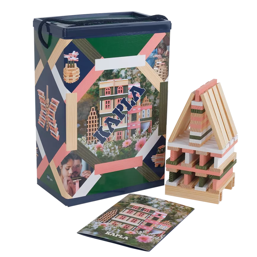 Med Kaplas byggeklodser mÞder dit barn en verden af muligheder for at bygge og danne mÞnstre - i både 2D og 3D.Uden hverken lim eller clips kan dit barn skabe utrolige vÊrker - og imens udvikle sin fantasi og motorik. Legen fremmer logik og fantasi, og dit barn lÊrer helt umÊrkeligt om geometri, matematik, rumlighed og balance.Gennem barndommen gennemgår dit barn forskellige trin af kognitiv udvikling. I hvert trin leger dit barn på forskellige måder og udvikler forskellige fÊrdigheder. Kapla udvikler sig med dit barn, der gradvist kan skabe mere og mere komplicerede konstruktioner.Koncentration, vedholdenhed og tålmodighed styrkes under legen.SÊttet indeholder:200 stk i forårsfarver. Idebog.VÊlg gerne flere farver eller brug en farvet klods som supplement til andre Kapla brikker for at skabe dybde i byggeriet og mulighed for at lave mÞnstre i flere farver.Tip: Lav en sej dominobane med stavene - og se dem vÊlte på stribe!Find desuden inspiration til utrolige mÞnstre og bygningsvÊrker i de flotte inspirationsbÞger fra Kapla, som du finder lige her!