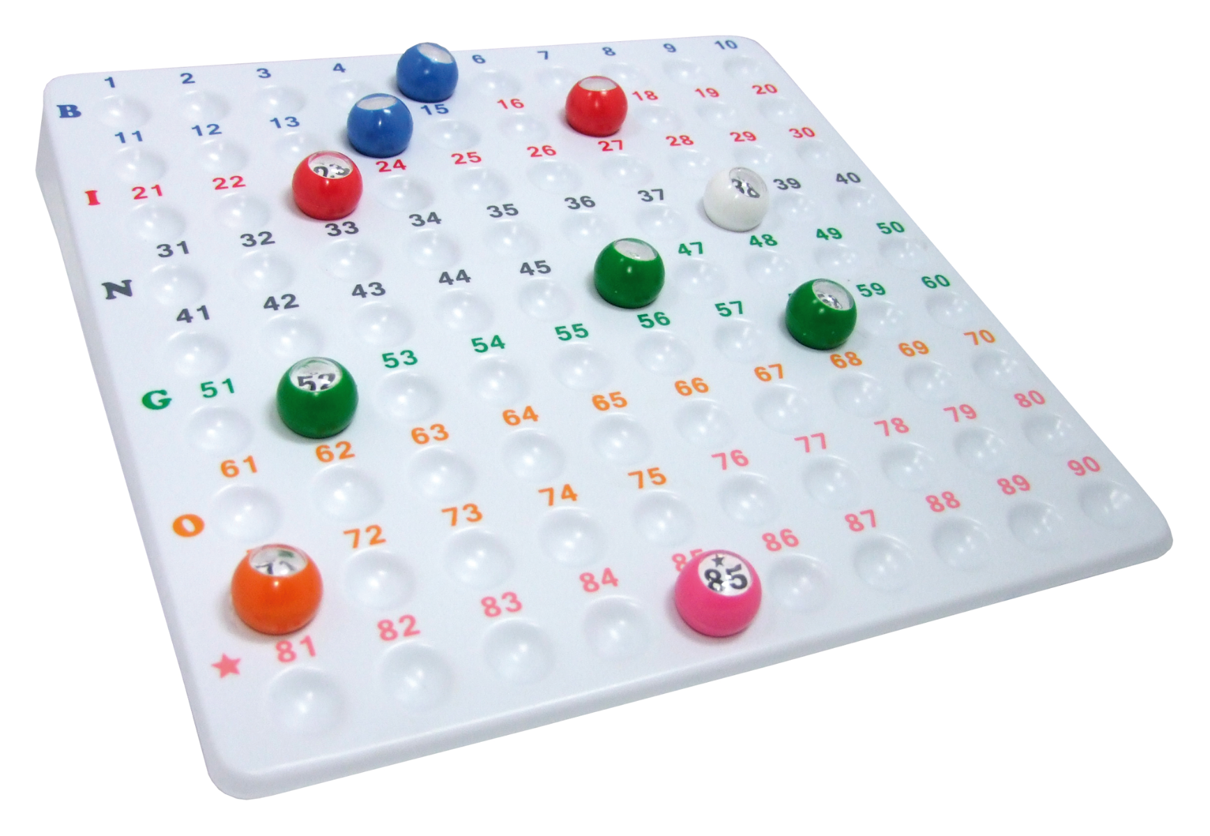 En smart plade til at lægge talkugler på, når I skal spille tallotteri, bingo eller banko.Ekskl kugler.