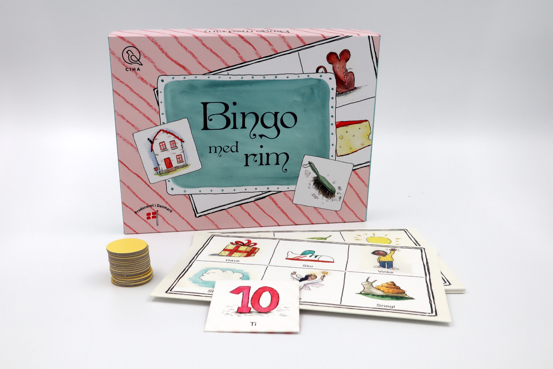 I dette bingospil skal I finde ordpar, der rimer, for at få bingo. Legen styrker dit barns sprogudvikling, udtale og opmærksomhed på, hvordan ordene lyder.Med 6 bingoplader (til op til 6 spillere) og 30 små kort med illustrationer, der passer til.For 2-6 spillere.