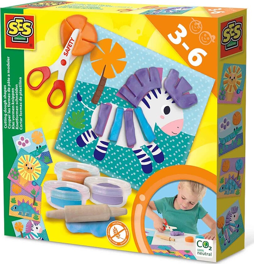 Klippe modellervoks med saks? Ja, det er muligt! Dette sæt fra SES Creative lærer børn at klippe forskellige former for at udfylde de 4 laminerede kort. Ud over de genanvendelige kort og de 3...