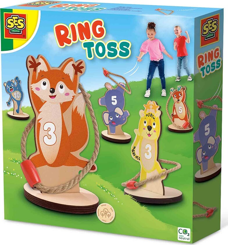 Ringkast! Disse 5 muntre dyr kan sęttes op i et ring-toss-arrangement efter eget valg. På denne måde kan bųrn lege ringkast i det uendelige udendųrs. Prųv at kaste ringene rundt om så mange dyr...