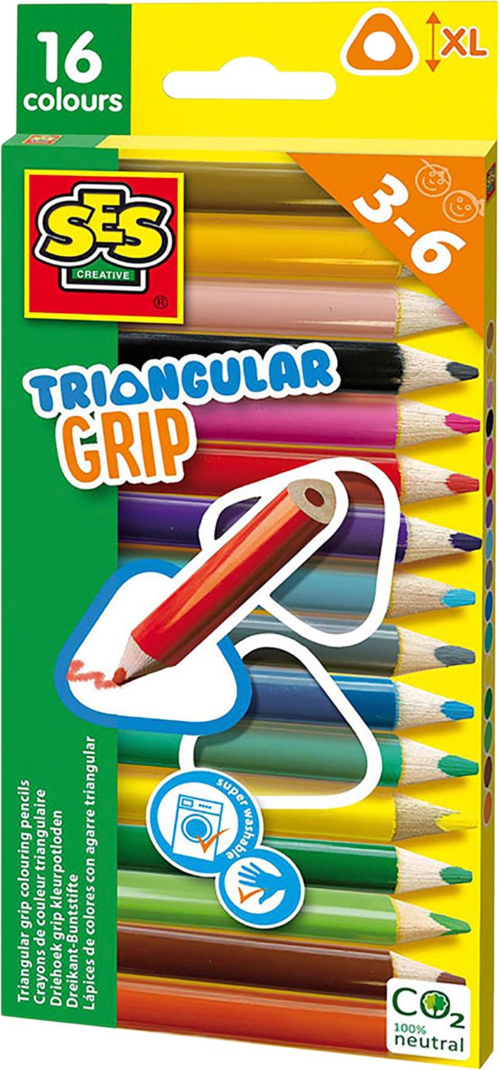 Disse farveblyanter har en trekantet form, som sikrer et solidt greb. Der er i alt 16 forskellige farver.Indhold: 1 pakke med 16 farveblyanter.Emballage: 21 x 18 x1 cmProduceret i HollandAlder: 3-6 år