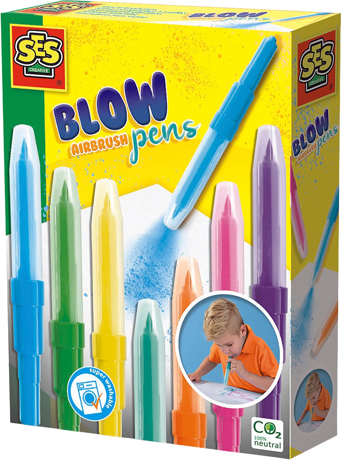 Wow! Disse airbrush-penne er unikke! Du kan lave dem om til markører, som du blæser ind i.Når du blæser, kommer en klar farve på din side. Brug de syv farver til at omdanne dine farvelagte tegninger.Gul, Orange, Grøn,Blå,Lilla, Pink ogTurkis airbrush-pen