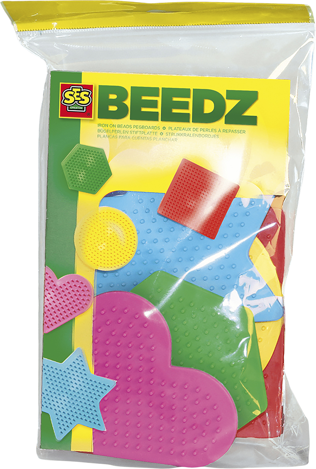 Fem små perleplader i forskellige former - en stjerne, et hjerte, en firkant, en rund og en sekskantet.Produceret i Holland.Alder: 3+