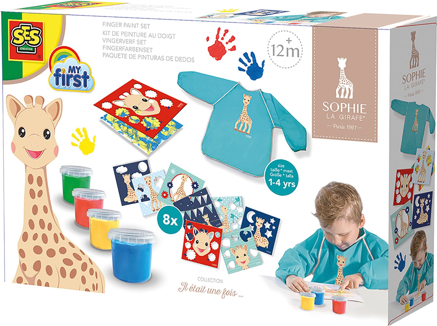 Lav sjove kunsthåndværk med Sophie la girafe!Med fingermalingen fra SES kan selv de mindste lave de skønneste kunstværker.Dub fingermalingen på hvide papirark, og skab de skønneste kunstværker.Læg et fint kort med Sophie la girafe oven på, mens malingen s