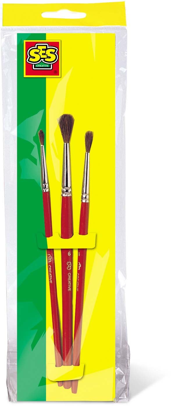 Pensler af høj kvalitet fra SES. Perfekte til mange timers kreativ leg og kunsthåndværk. - 3 forskellige størrelser. - Kan bruges til en række forskellige maleaktiviteter. - Lav vægt. - Høj kvalitet og holdbarhed. - Perfekt til kreative børn. - 3-pak. - Anbefalet alder: Fra 3 år.
