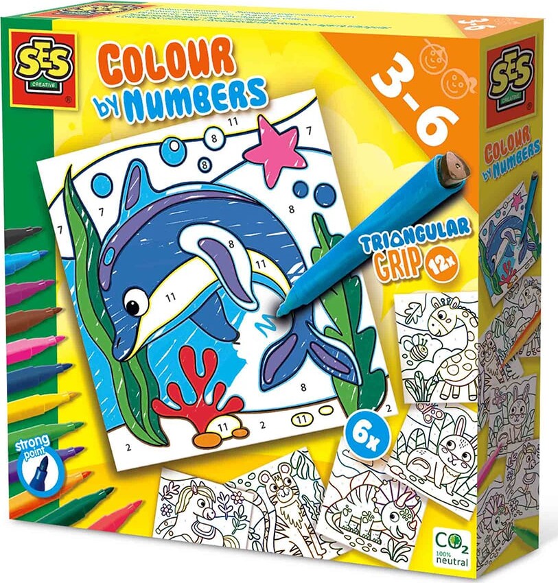 Farve-efter-tallene for små børn fra 3 år og opefter. De tykke trekantede markører fremmer godt...