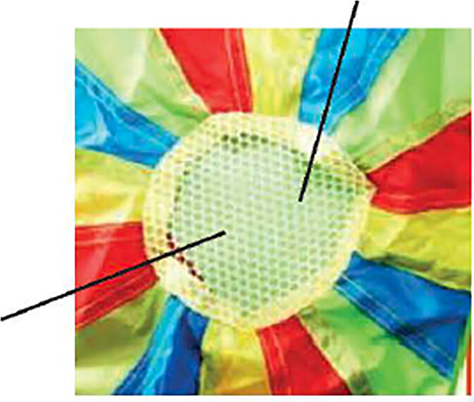 Med den sjove og farverige lege faldskærm, skal børnene samarbejde om at få den medfølgende...