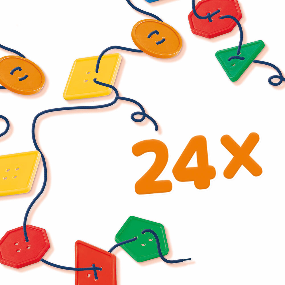 Det kan være svært at tråde knapper. Disse store knapper og farvede snørebånd gør det så...