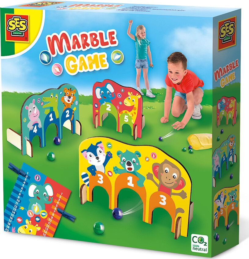 Dette kuglespil, med 3 træporte og 8 kugler, kan tages med overalt i den praktiske opbevaringspose....