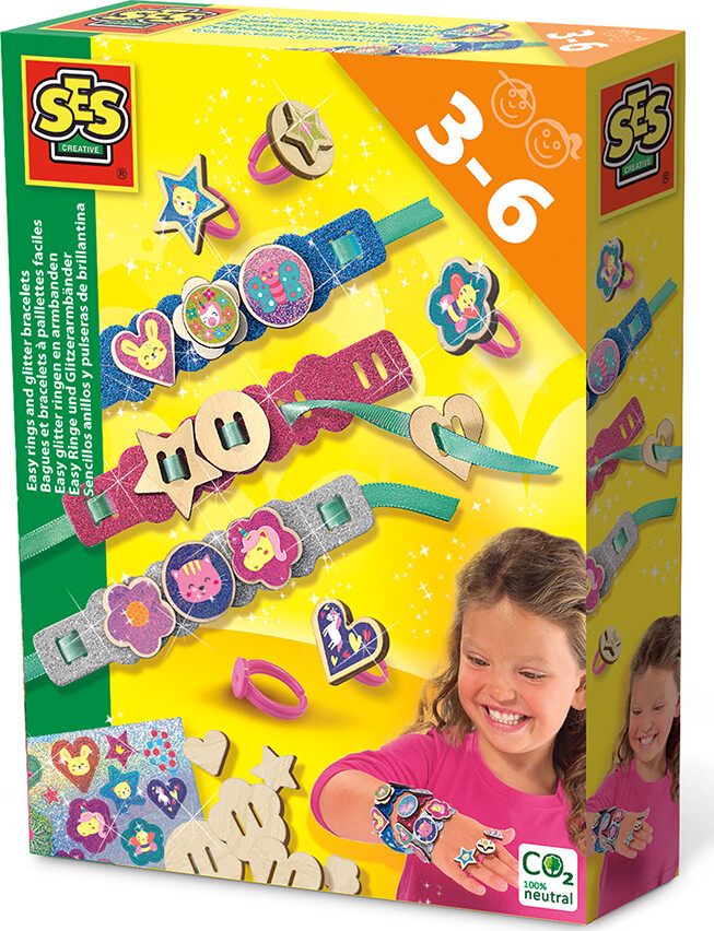 Glitterarmbåndog -ringe er et kreativt sæt, hvor børn kan skabe smukke smykker med de tre...