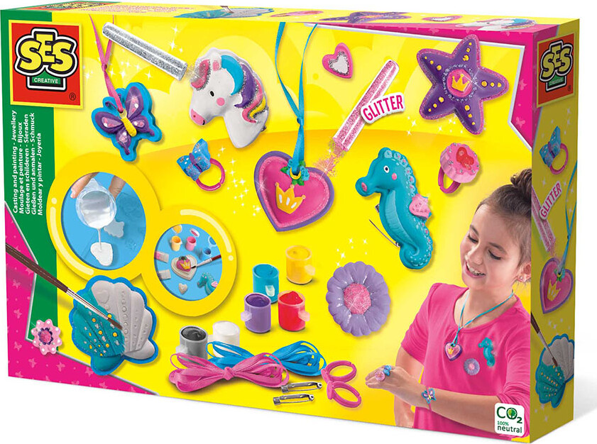 Nu kan du finde din indre smykkedesigner frem. Hæld vand og gips i formene. Når den er tør, kan...
