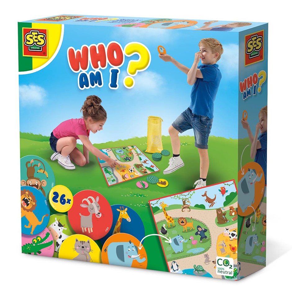 Gæt og Grimasser-spil, hvor du skal snige dig som en løve, forme en elefantsnabel eller strække hals som en giraf. Spil på hold, alle mod alle eller bare to og to, hvor I skiftes til at prøve at gætte hinandens fagter og bevægelser. I kan eventuelt skrue på sværhedsgraden, så I må sige dyrets lyde, fortælle hvad det spiser, eller kun mime, fordi det andet bliver for nemt.Når I har gættet dyret, skal I finde det på spillepladen. Legen opbygger dit barns ordforråd og styrker grovmotorikken, når I skal abe rundt og efterligne skønne dyr. At observere den mimende, bruge udelukkelsesmetode og huske, hvilke dyr, der er med i spillet og som allerede er blevet gættet på er også udviklende for dit barn.Pladen er i stof og tåler at blive leget med udendørs. Med 26 dyrekort, som I kan gætte.C02-neutralt legetøjDet udleder CO2 at producere og transportere legetøj. Hollandske SES Creative kompenserer for dette ved at købe truede eller misholdte skove i Tyskland, som de forbedrer ved at fjerne de syge træer, plante nye og arbejde for bedre biodiversitet.Desuden er alle SES Creatives emballager af lavet af genbrugsmaterialer.