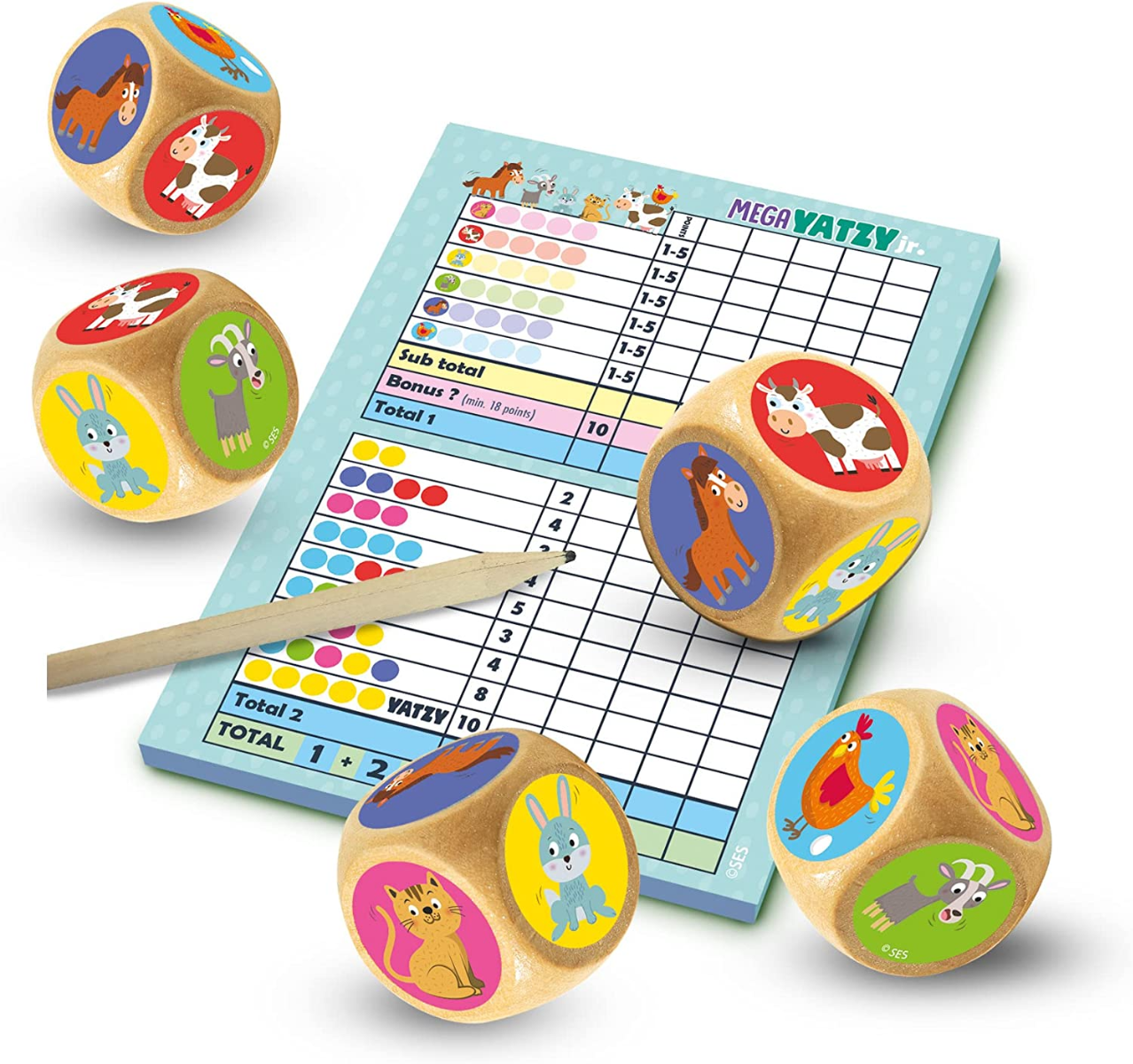 Søde dyreterninger i stort format, så dit barn kan more sig med at spille Yatzy på en lidt mere skør og lidt mindre tal-fokuseret måde. Nogle gange er det bare nok med alle de tal, der skal snige sig ind i alle mulige lege og spil. Men en ged, en ko, en hest eller en kanin mere er der altid plads til. Prøv selv. Indhold: 5 terninger i stort format med dyr påYatzy-blokBlyantRegler