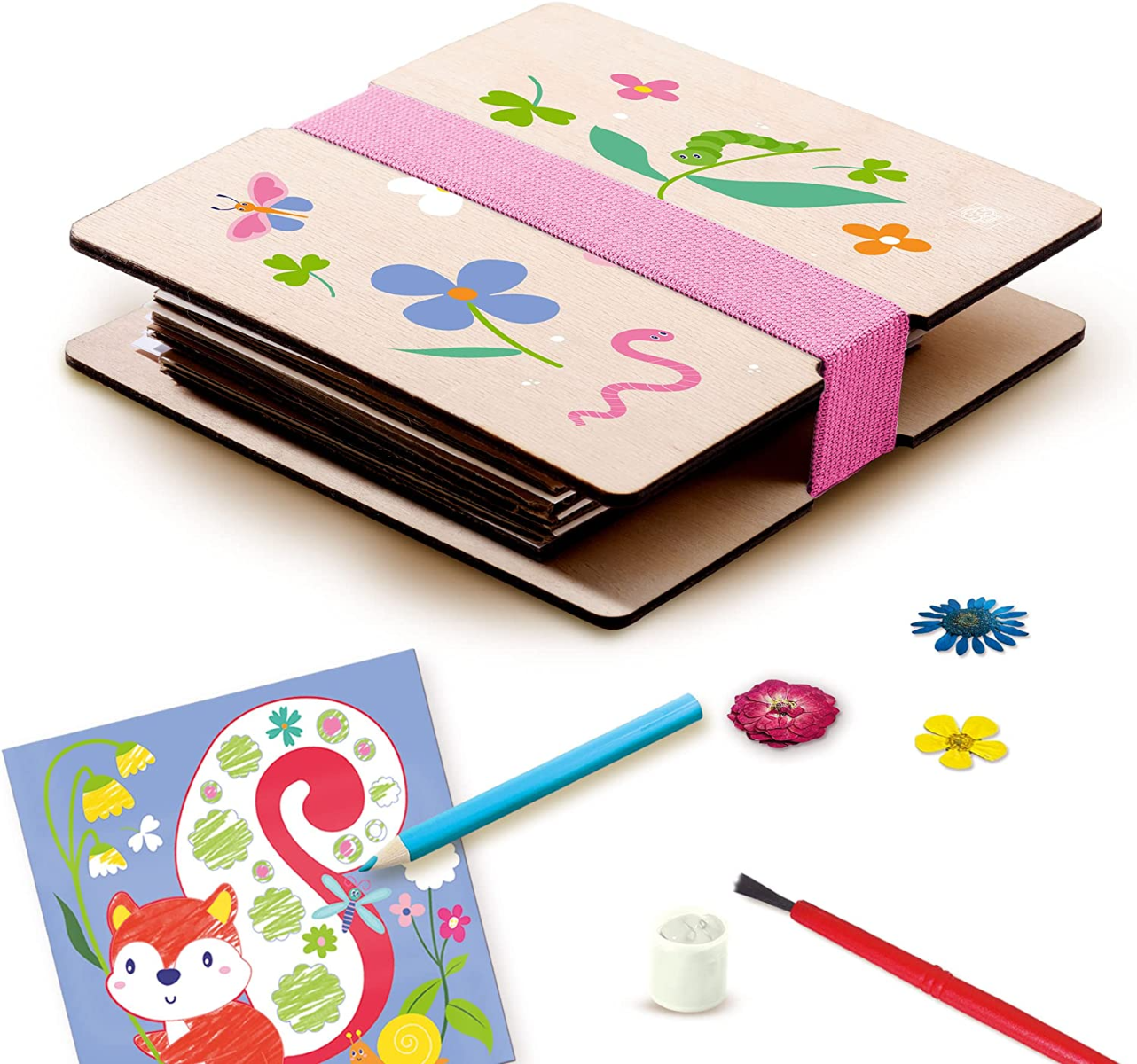 Med denne smarte blomsterpresse kan I lægge friske blomster i pres, komme dem 20 sekunder i en mikrobølgeovn og derefter bruge blomsterne direkte. I kan dekorere med medfølgende kort med blomsterne, eller I kan lave jeres helt egne kunstfærdige krea-projekter med de fine, tørrede og pressede blomster. Indhold: Blomsterpresse med elastikLim og pensel6 dekorationskort8 farveblyanterInstruktioner