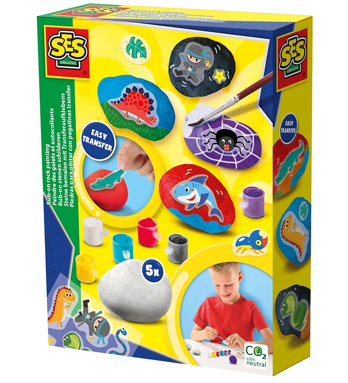 Med SES Creative - Mal På Sten - Overførselsmærker kan dit barn udfolde sin kreativitet på en sjov og inspirerende måde! Dette produkt er ideelt til kunstneriske sjæle, der elsker at male og dekorere. Sættet indeholder alt, hvad der er nødvendigt for at skabe smukke og unikke stenmalerier. Børn kan nemt overføre farverige designs til stenene ved hjælp af de medfølgende overførselsmærker, hvilket gør det til en leg for selv de yngste kunstnere. At male på sten er ikke kun en underholdende aktivitet, men det stimulerer også børns fantasi og finmotorik. Det er en perfekt aktivitet til kreative legeaftener, fødselsdage eller bare som en sjov måde at tilbringe tid sammen med venner og familie. Når stenene er færdigmalet, kan de bruges som dekorative elementer i haven, som gaver til bedsteforældre eller som personlige kunstværker til hjemmet. SES Creative - Mal På Sten - Overførselsmærker er designet med fokus på sikkerhed, så du kan være tryg ved, at dit barn bruger materialer af høj kvalitet. Giv dit barn muligheden for at skabe noget særligt og unikt med dette kreative sæt, der vil bringe glæde og stolthed. Gør dig klar til at se dit barns kreative evner blomstre med SES Creative!