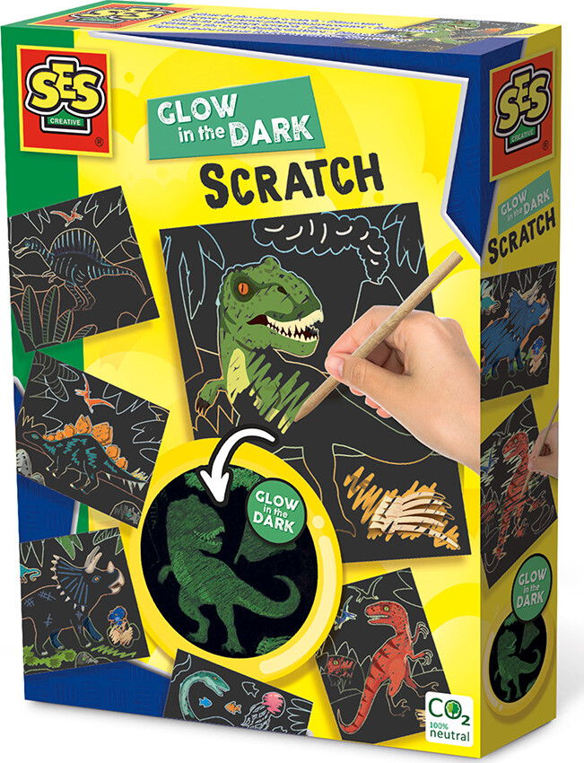 Ses Creative - Ridsekort - Selvlysende Dinosaurer er ikke kun en sjov aktivitet; de hjælper også med at udvikle børns motoriske færdigheder og koncentration. Uanset om det er til en fødselsdagsgave eller som en sjov aktivitet derhjemme, vil disse ridsekort helt sikkert være et hit!