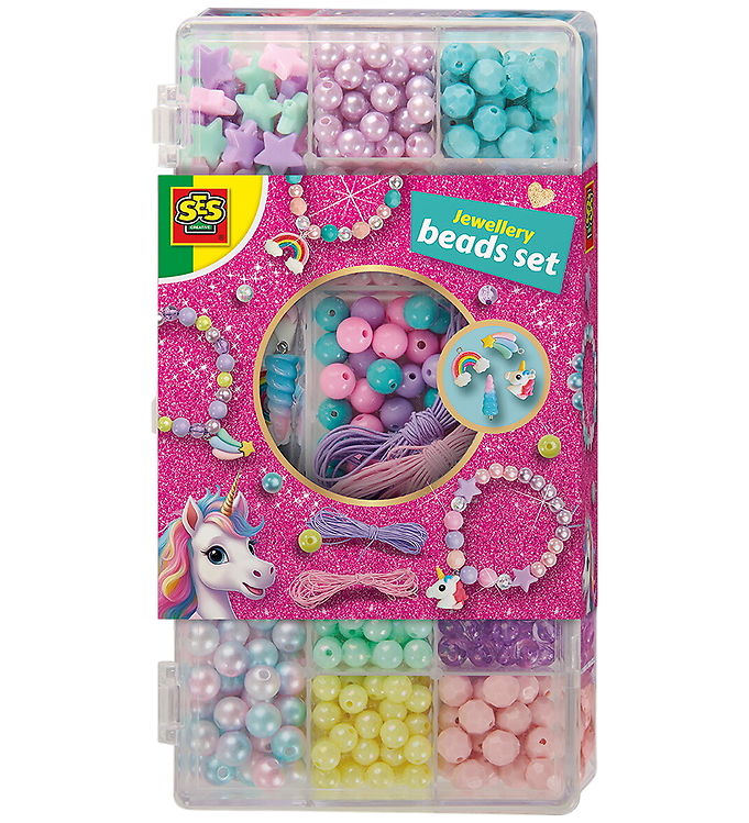 Med de medfølgende elementer kan børnene lave halskæder, armbånd og meget mere. Det er en sjov og kreativ aktivitet, der også styrker finmotorikken og koncentrationen. SES Creative Smykkesæt - Enhjørning er perfekt til legeaftaler, fødselsdage eller som en kreativ aktivitet derhjemme.