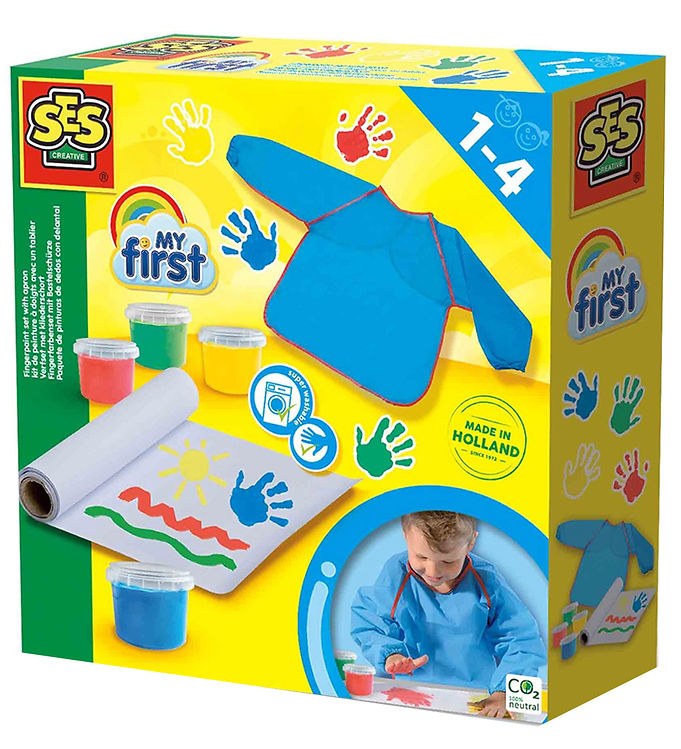 Giv dit barn en fantastisk introduktion til kunst med SES Creative - Min Første Fingermaling m. Forklæde. Dette produkt er perfekt til de små kunstnere, der elsker at udforske farver og former. Med fingermaling kan børnene slippe deres kreativitet løs og skabe unikke kunstværker, der fremmer deres fantasi.