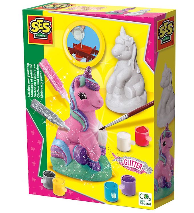 Når du er færdig med støbningen, kan du dekorere din enhjørning med de medfølgende farver og give den et personligt touch. Dette projekt er ikke kun sjovt, men også en fantastisk måde for børn at lære om kunst og håndværk. Start dit kreative eventyr i dag med SES Creative!