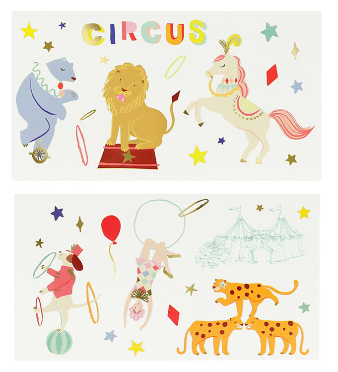 Giv dit barn en sjov og farverig oplevelse med Meri Meri tatoveringerne i circus tema. Disse fantastiske tatoveringer er designet med livlige motiver, der inkluderer glade clowner, farverige balloner og dygtige akrobater, hvilket gør dem perfekte til enhver fest eller legestund. Hver pakke indeholder et udvalg af forskellige designs, så dit barn kan vælge sin favorit og vise den stolt frem til vennerne. Meri Meri tatoveringer er ikke kun sjove, men også sikre at bruge. De er lavet af hudvenlige materialer og kan nemt fjernes med vand, hvilket gør dem ideelle til børn i alle aldre. Uanset om det er til en fødselsdagsfest, udklædningsfest eller bare en almindelig legedag, vil disse tatoveringer helt sikkert bringe smil og glæde. Med deres unikke og farverige designs er Meri Meri tatoveringerne en fantastisk måde at tilføje lidt ekstra sjov til dit barns dag. Lad dem lade deres fantasi blomstre, mens de udforsker den magiske verden af cirkus med disse vidunderlige tatoveringer. Perfekte til kreative lege og festlige anledninger, vil disse tatoveringer helt sikkert blive et hit blandt børn og forældre.