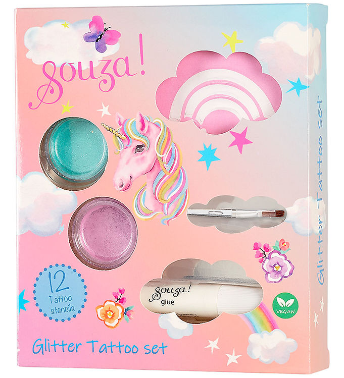 Souza Glitter-Tatoveringer - 12 Skabeloner - Unicorn