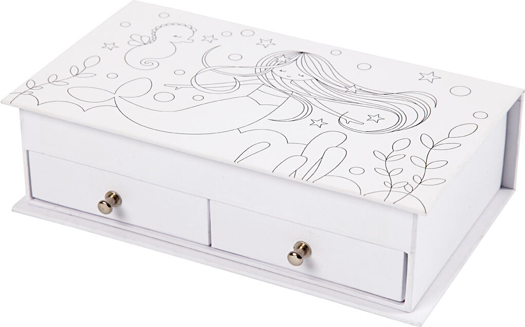 Smykkeskrin Til Børn - Havfrue - Mal Selv - Hvid