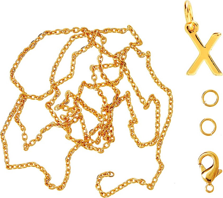 DIY - smykkedesign 18 karat guldbelagt smykkesæt med bogstavet ""X"". Dele til...