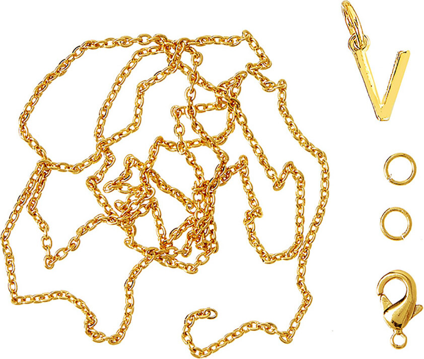 DIY - smykkedesign 18 karat guldbelagt smykkesæt med bogstavet ""V"". Dele til...