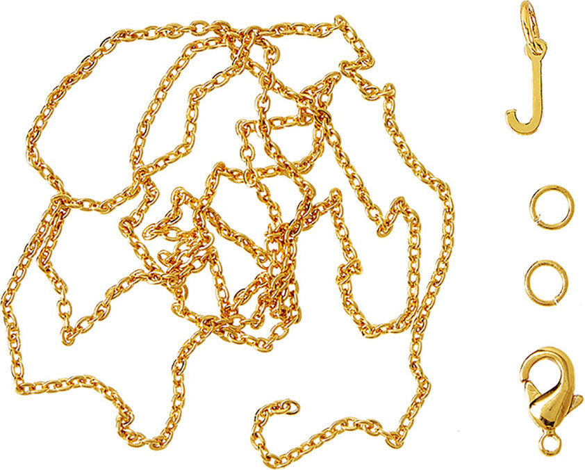 DIY - smykkedesign 18 karat guldbelagt smykkesæt med bogstavet ""J"". Dele til...