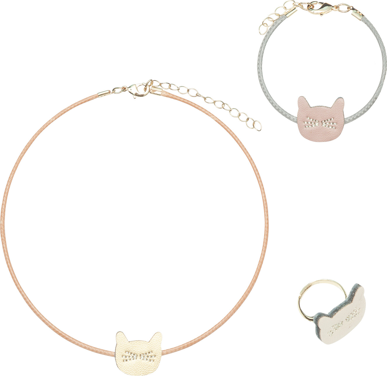 Et sødt smykkesæt, der indeholder halskæde, armbånd og fingerring alle med fine...