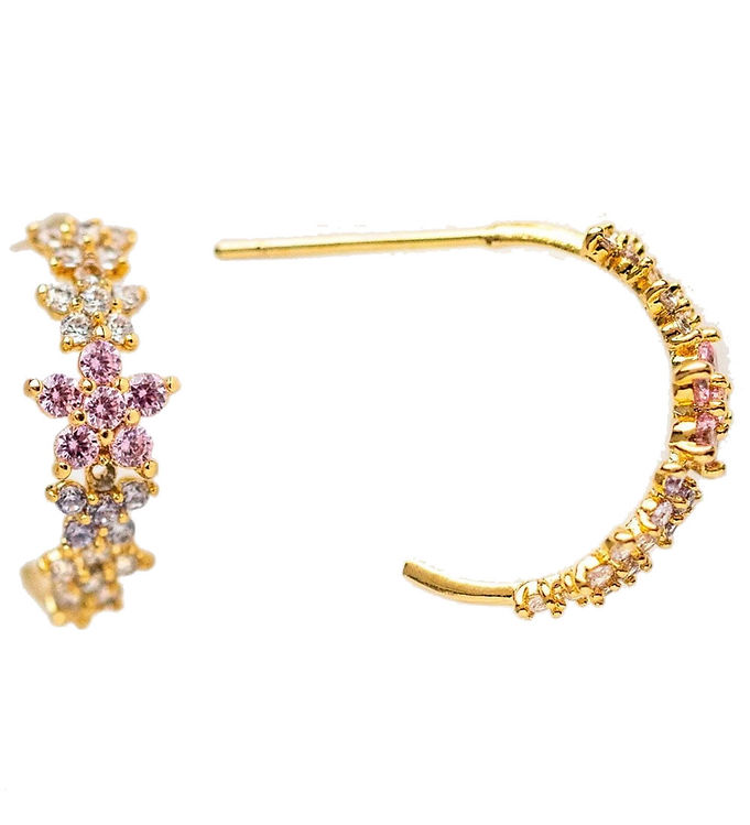 Øreringene er designet med smukke blomster, der fanger opmærksomheden og tilføjer feminin charme til ethvert outfit. De er fremstillet af kvalitetsmaterialer, hvilket sikrer både holdbarhed og komfort. Det lette design gør dem behagelige at bære hele dagen.