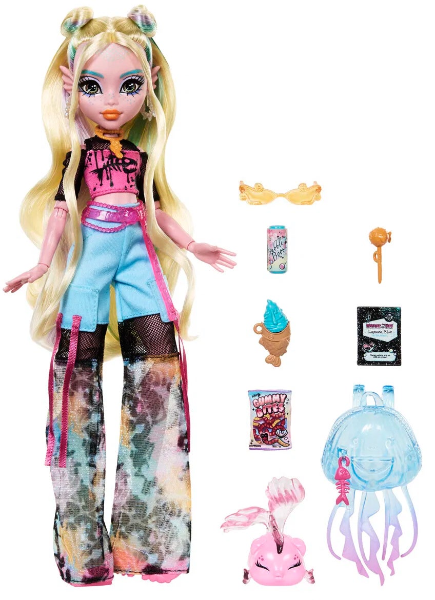 Moderigtig dukke fra Monster High med en ikonisk stil. Den har et sødt kæledyr og mange sjove tilbehør der fremmer både fantasi og rollespil. Perfekt til leg hele dagen lang. - Indeholder: 1 dukke, 1 tøjsæt, 1 kæledyr, 7 tilbehør. - Bevægelig krop. - Flere stykker sjovt tilbehør. - Dukken kommer med det uhyggeligt søde kæledyr, Neptuna. - CE-mærket. - Anbefalet alder: Fra 4 år. - Plastik, tekstil.