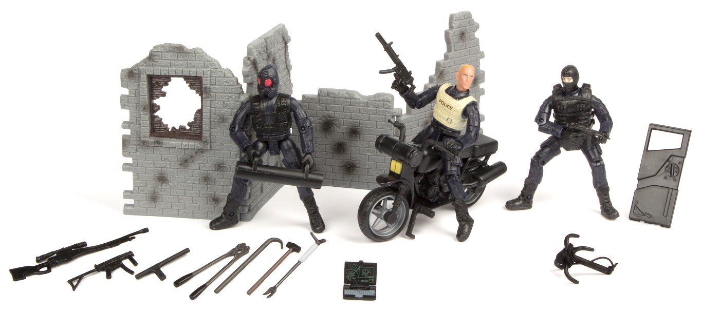 Seje og meget detaljerede S.W.A.T. action-figurer fra World Peacekeepers. Figurerne i 1:18 serien er 9,5cm høje, ligesom man kender det fra flere andre legetøjsserier, såsom Star Wars m.v. Action SWAT figurer fra World Peacekeepers er bevægelige i alle le
