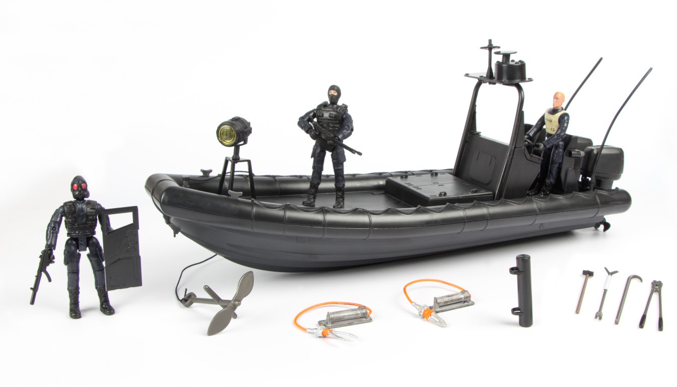 S.W.A.T. Patruljebåd inkl. tilbehør og 3 actionfigurer 1:18