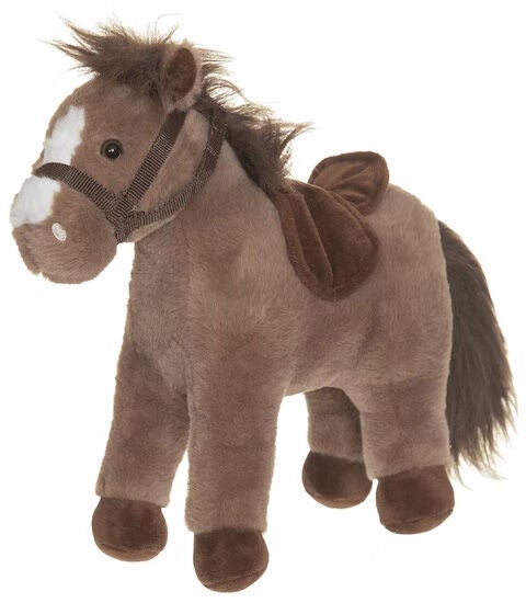 Fin bamse fra Teddykompaniet med en brun sadel. Den har en hvid prik på næsen og en brun krop. Opfind dine egne eventyr og fortællinger det er kun fantasien, der sætter grænser! CE-mærket. Anbefalet alder: Fra nyfødt.