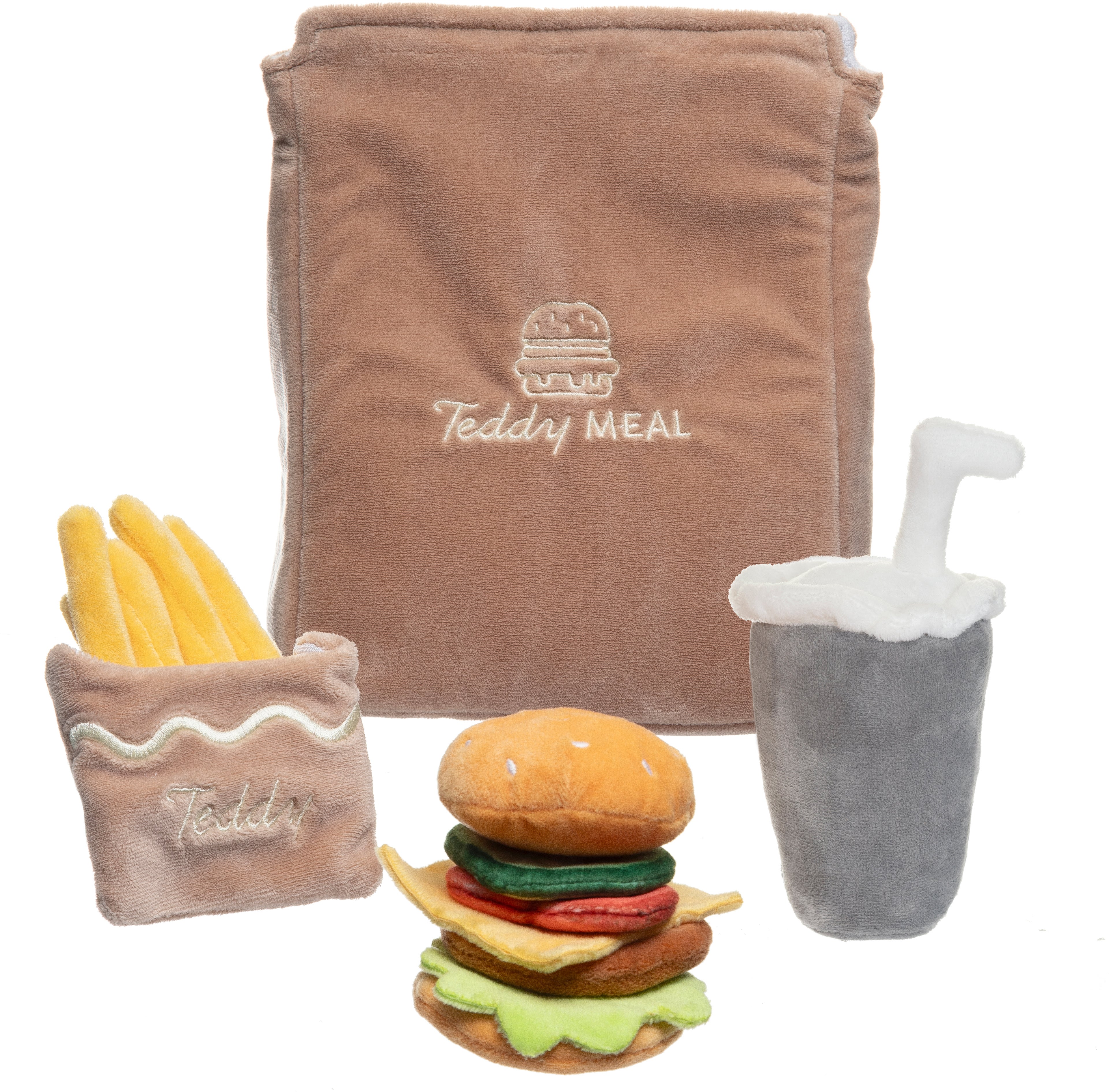 Blødt legesæt fra Teddykompaniet. Perfekt til timevis af fantasifuld leg. - Indeholder: 1 pose, 1 hamburger, 1 pomfrit, 1 kop. - CE-mærket. - Anbefalet alder: Fra 12 måneder.
