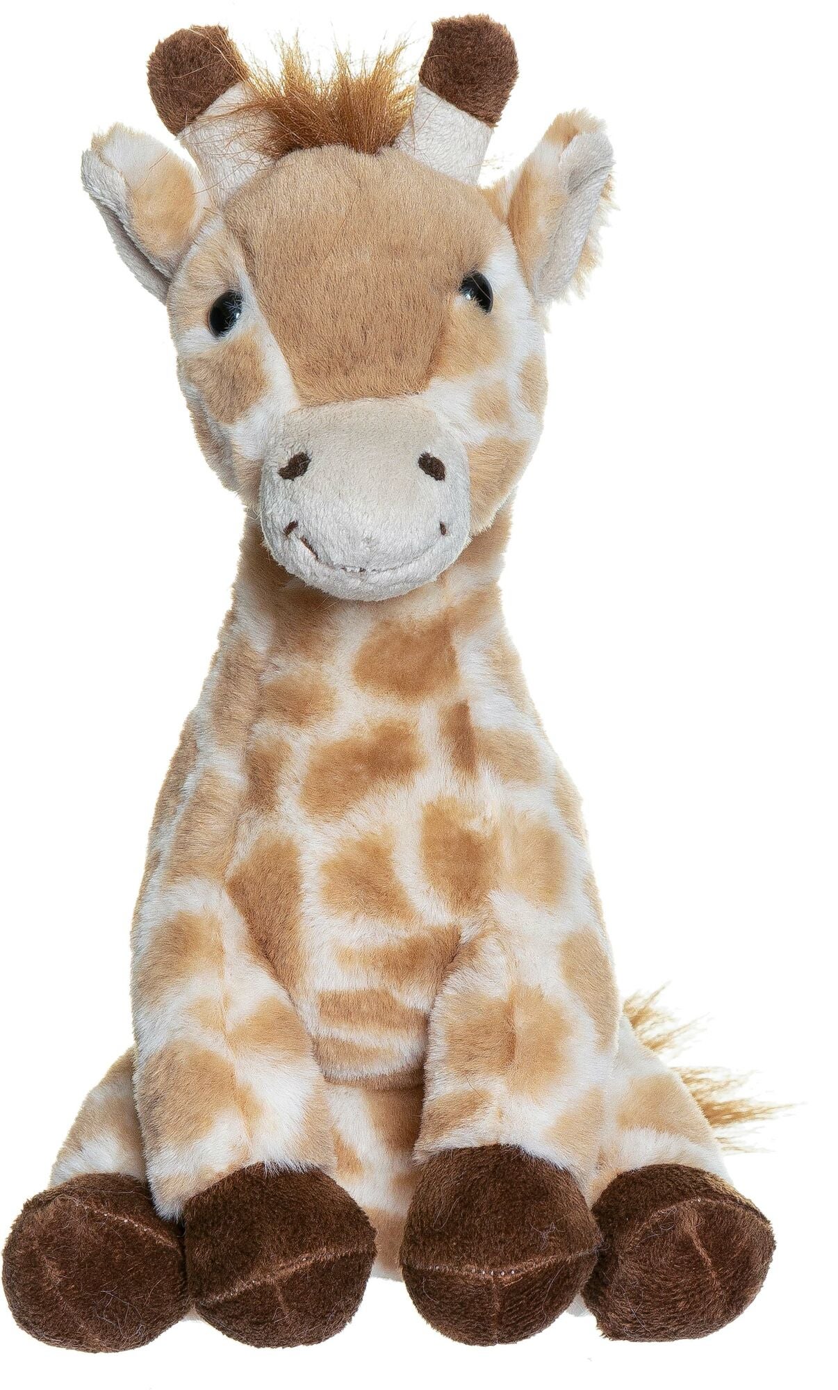 Behagelig giraf fra Teddykompaniet med en superblød pels. Den har blødt fyld i genanvendt plastik og broderede, venlige øjne. Giraffen har brune horn, brune fødder og en lang, brun manke. CE-mærket. Produktet er Oeko-Tex® 100-certificeret, hvilket sikrer, at det er fri for skadelige kemikalier. Anbefalet alder: Fra nyfødt. 100 % polyester.