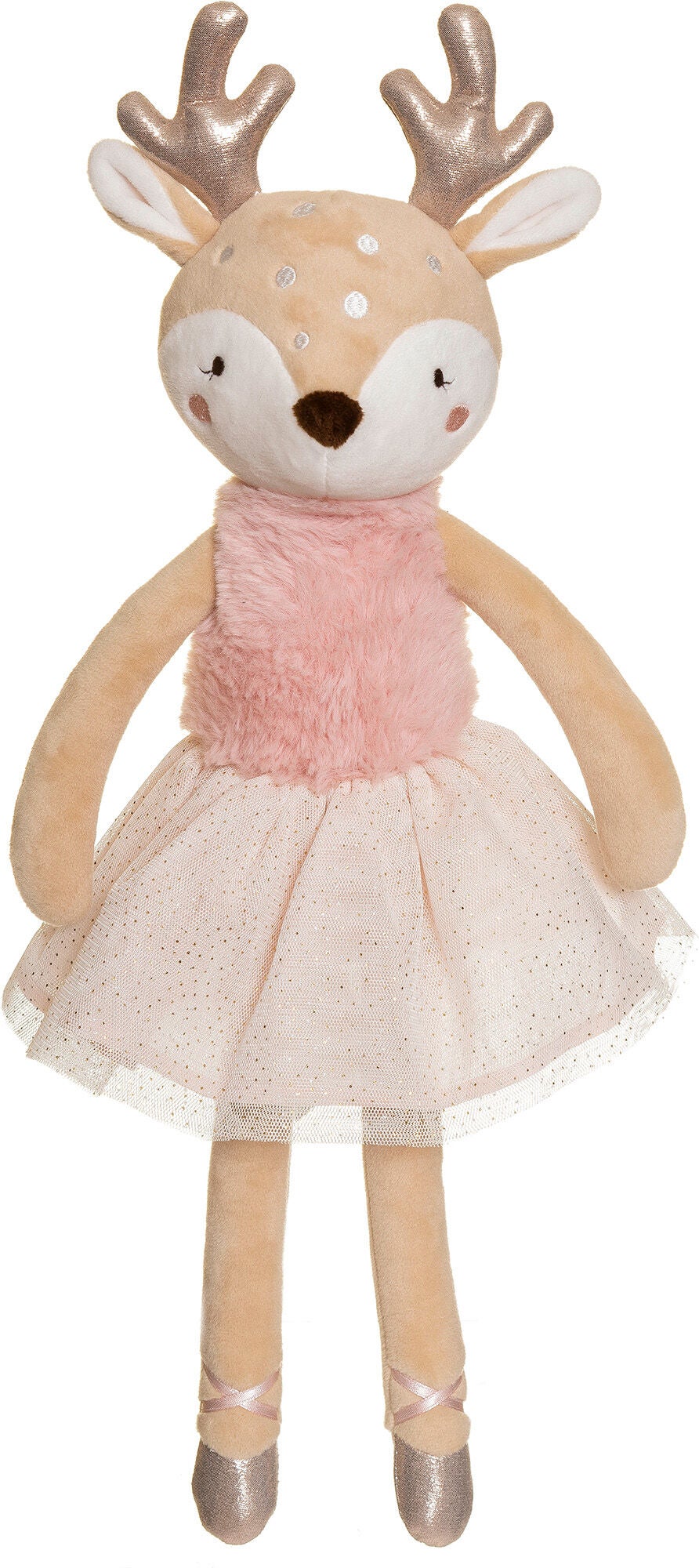 Ballerinas dådyr fra Teddykompaniet med et blødt, sødt design. Det har skinnende, guldfarvede horn og ballerinasko. Dådyret har et lyserødt, glitrende tylskørt og en lyserød, superblød top. Perfekt til både leg og hygge. CE-mærket. Anbefalet alder: Fra nyfødt.