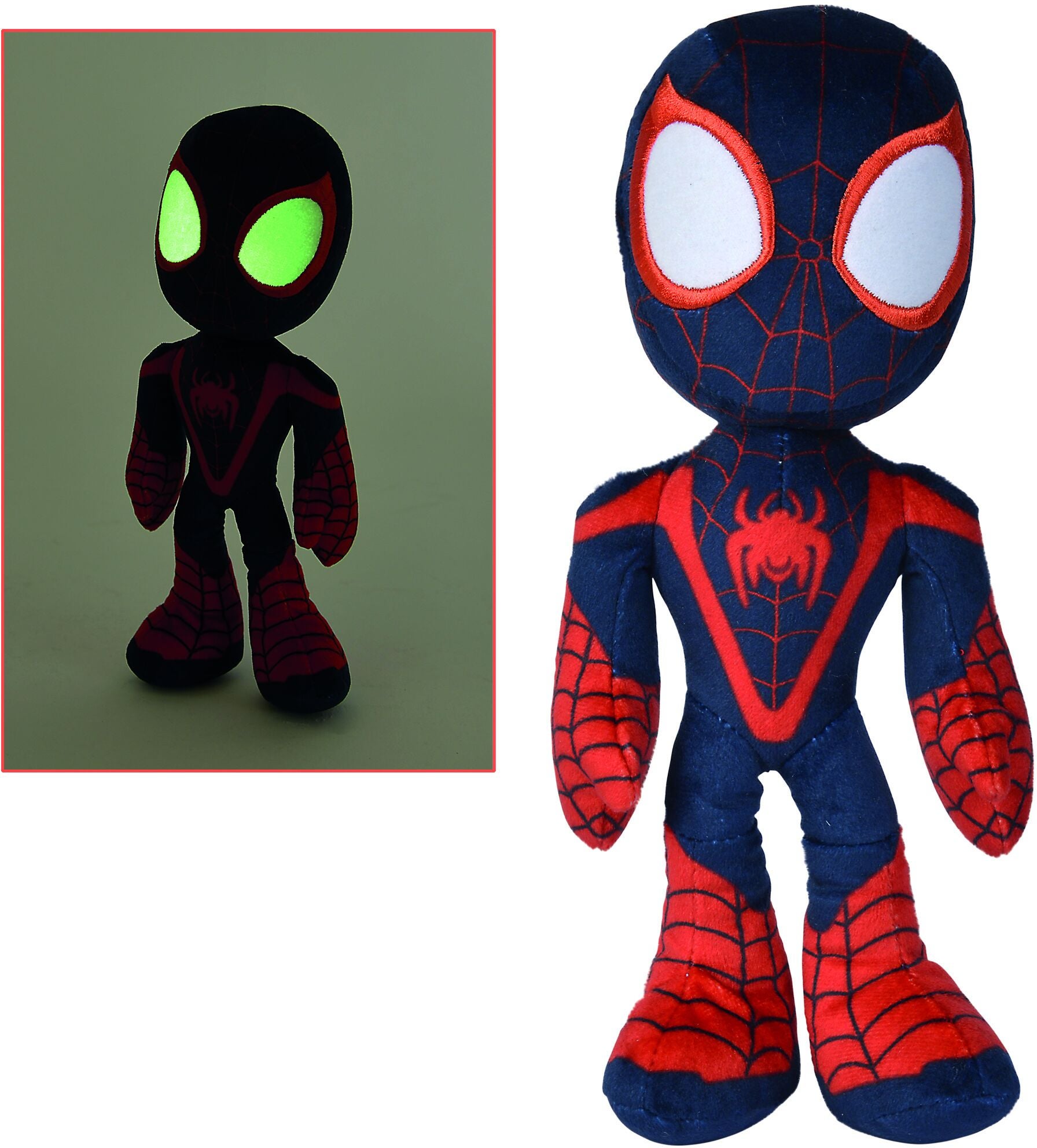 Blød bamse fra Spidey and His Amazing Friends med store, selvlysende øjne. Den perfekte ven både ved leg, og når dit barn skal sove. CE-mærket. 25 cm. Selvlysende. Anbefalet alder: Fra nyfødt.