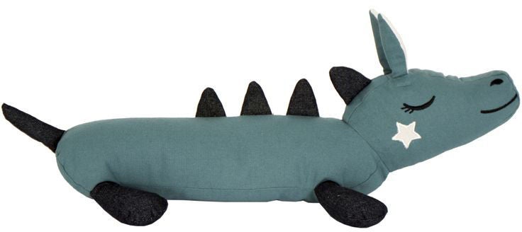 Behagelig bamse fra Roommate i form af en drage. Perfekt til både at lege og sove i. - Blødt materiale. - Flotte detaljer. - Blød og behagelig kvalitet til dit barn. - Maskinvask 30°C. - Tørres i hængende tilstand. - Produktet er GOTS-certificeret. - Produktet er certificeret i henhold til Oeko-Tex® og indeholder således ingen skadelige kemikalier. - Anbefalet alder: Fra nyfødt. - Ydermateriale: økologisk bomuld. - Fyld: polyester.