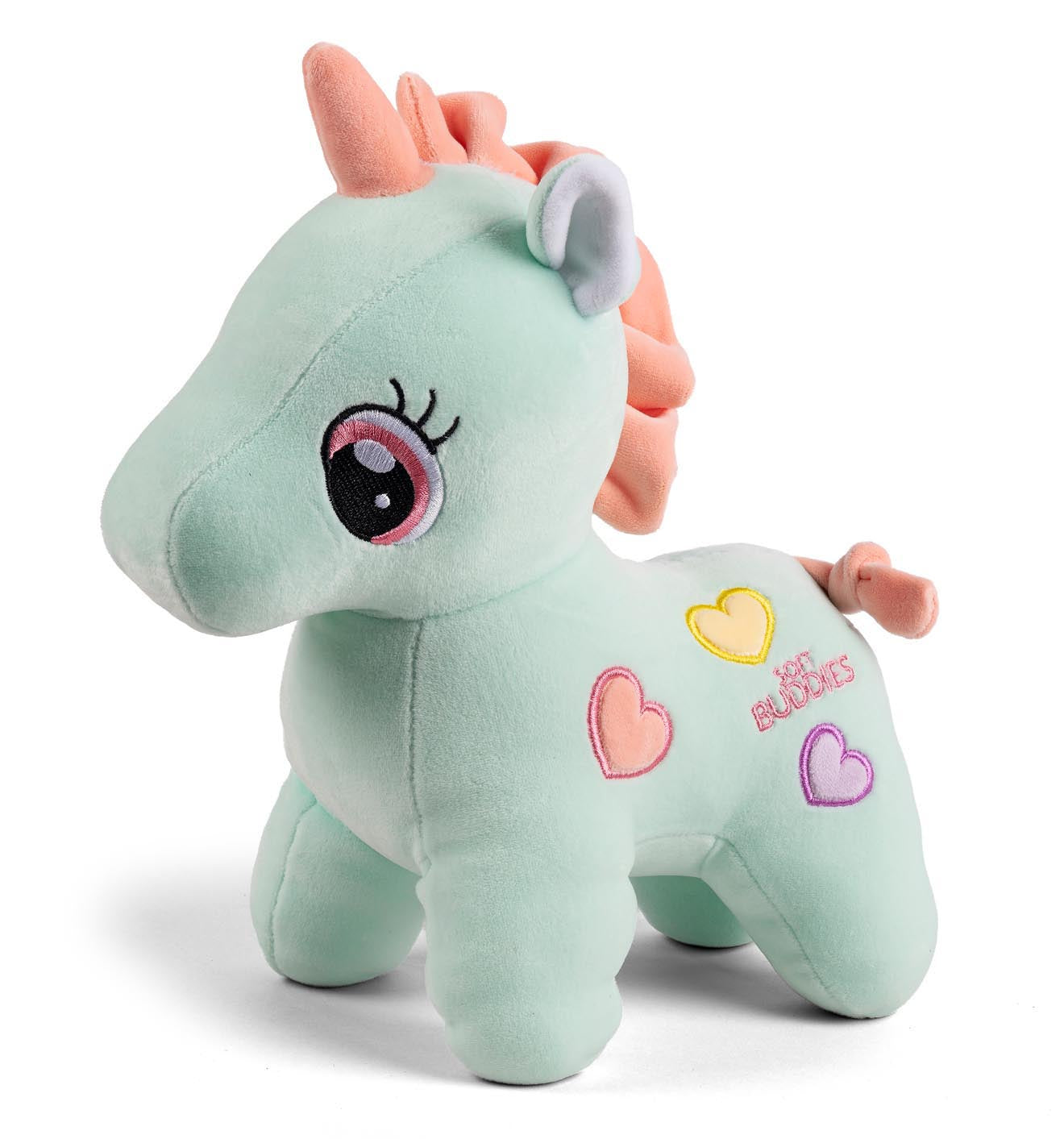 Soft Buddies Unicorn Grøn Soft Buddies enhjørning i grøn med hjerte dekorationer. * 25 cm. Super lækker og superblød bamse som er elsket af børn i alle aldre.