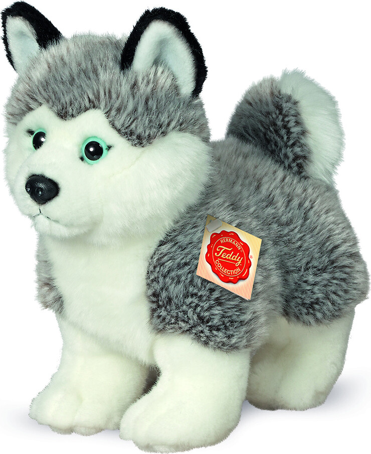 Stående husky hund. Vaskeanvisning: Kan maskinvaskes ved 30°C uldprogram. Tåler IKKE...