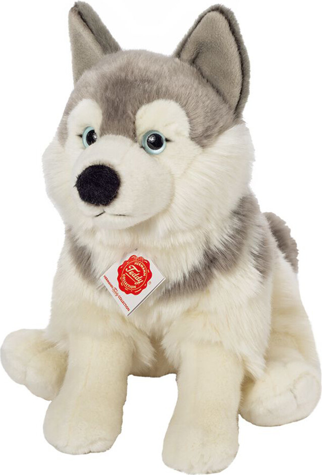Siddende husky hund. Vaskeanvisning: Kan maskinvaskes ved 30°C uldprogram. Tåler IKKE...