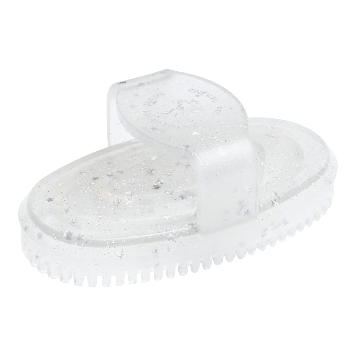 Den her smukke strigle med glitter er virkelig noget, der vil få dit barns kæphesteudstyr helt op at ringe. En gummistrigle er god at have til at fjerne støv og gnuppe hesten der, hvor det klør.