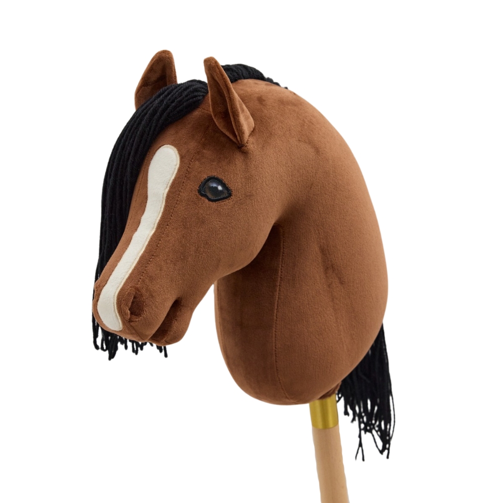 Bliv klar til spring, dressur, rolleleg og vęddelųb med denne flotte brune kęphest med hvid blis i panden. Pandelokken og manen har en god lęngde, så dit barn nemt kan sętte den flot op eller flette den.På alle Cheval Roi kępheste kan pinden skrues af, så den ikke fylder ret meget, når den ikke er i brug.Sammenlignet med de tidligere kępheste har Charlie nu nyt metalgevind, hvor hoved og kęp kan skrues fra hinanden.Charlie kęphesten fra Cheval Roi er nu håndpolstret over en formstųbt skumkerne, så den bedre holder formen. Desuden har den en håndsyet, rustik sųm på venstre side af nakken, som er tydeligere end den maskinsyede sųm, de gamle modeller havde - se foto 2. Nogle af kęphestene synes den er sej, mens andre svinger manen over og viser den anden side frem. 2024-modellerme har en lettere vęgt end de tidligere kępheste-modeller, så de er lettere at håndtere for dit barn.Sųd og trofast kęphest til leg og udklędning eller dressur og konkurrencer med vennerne.