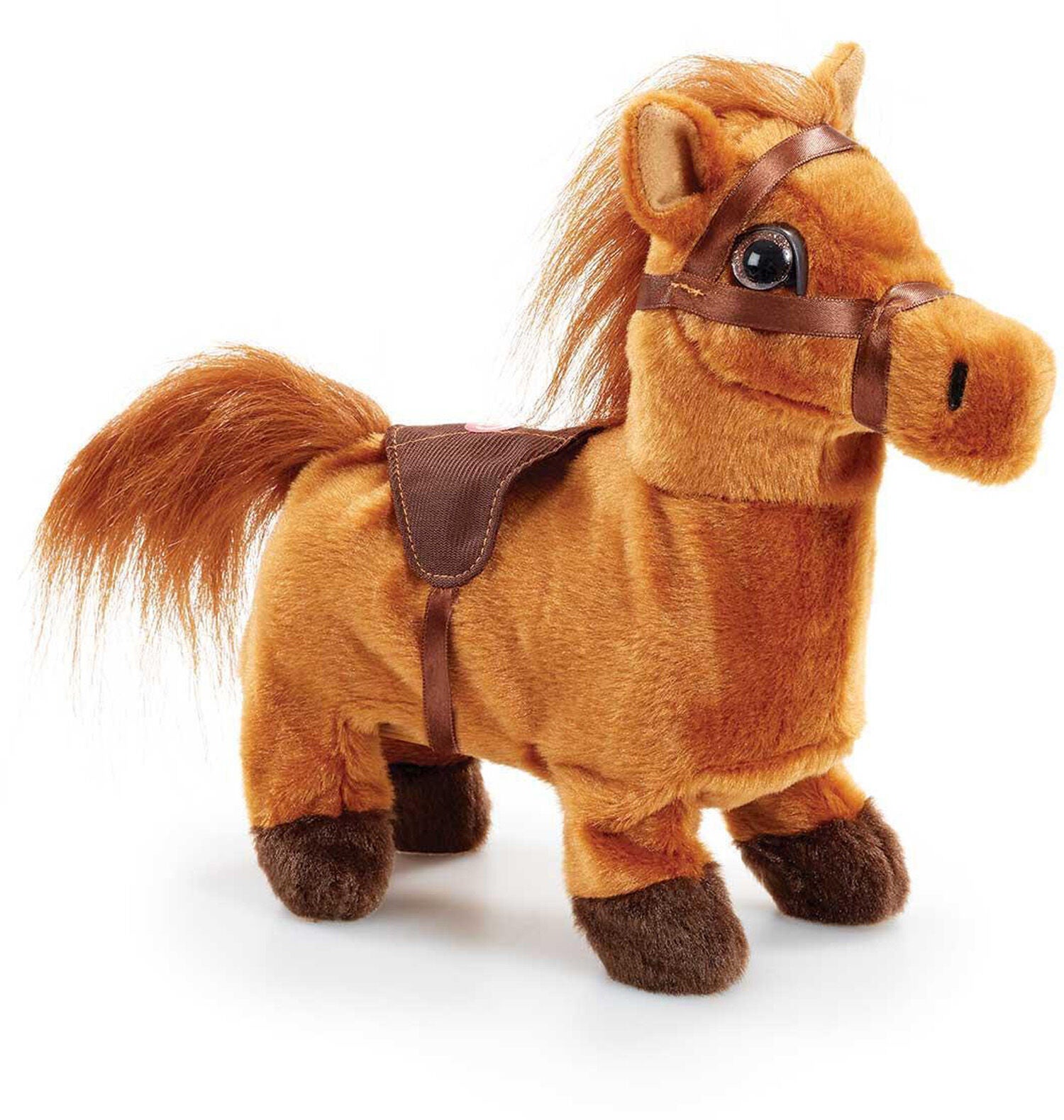 Sjov elektrisk pony fra HappyPets der elsker gåture med en fin emballage der kan bruges som et hus. Den har realistiske lyde. CE-mærket. Anbefalet alder: Fra 3 år. Batteri: 4 x AA (medfølger ikke).